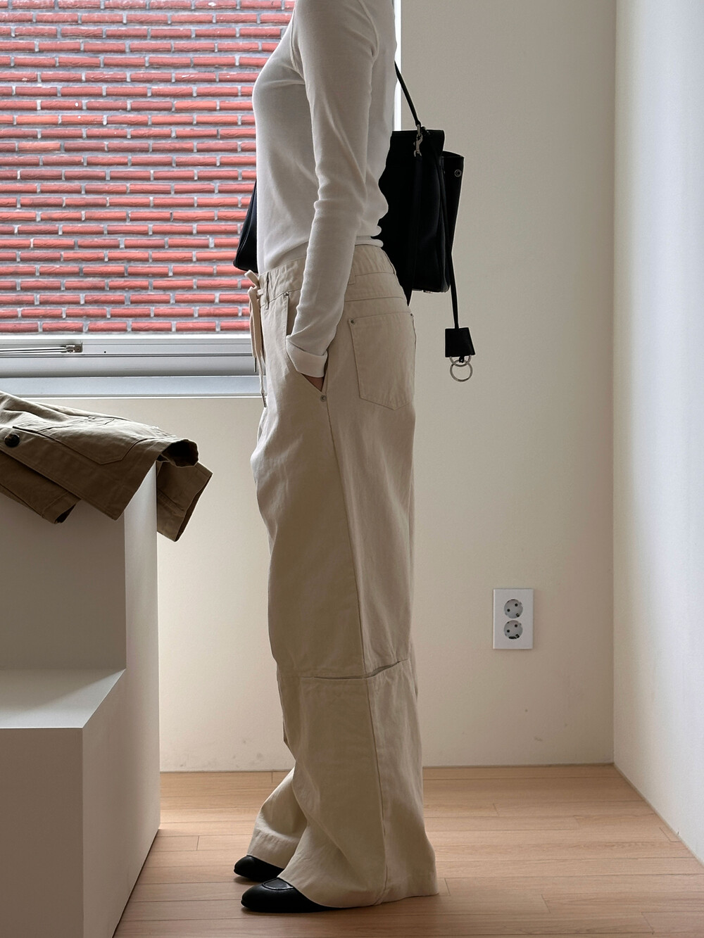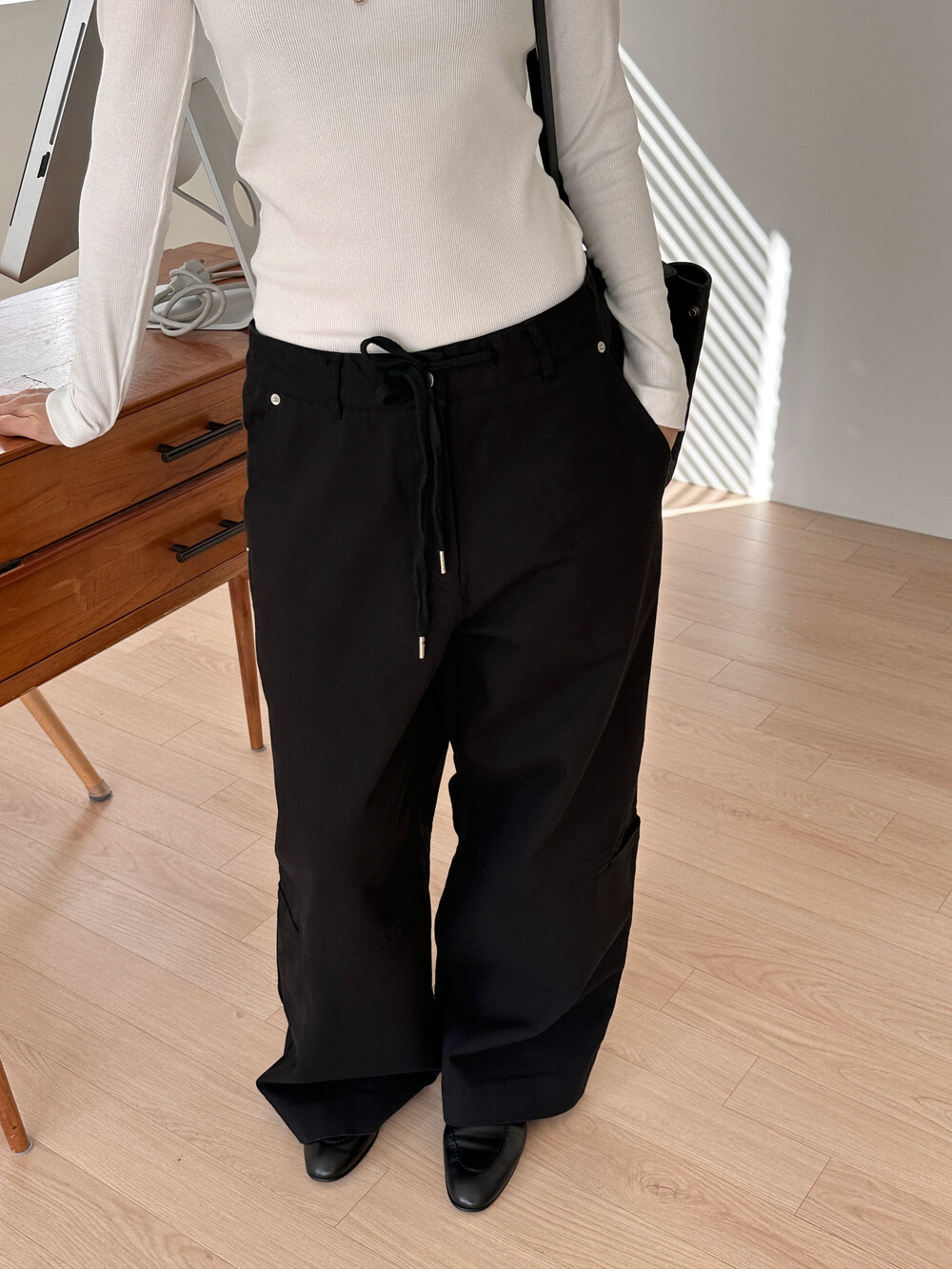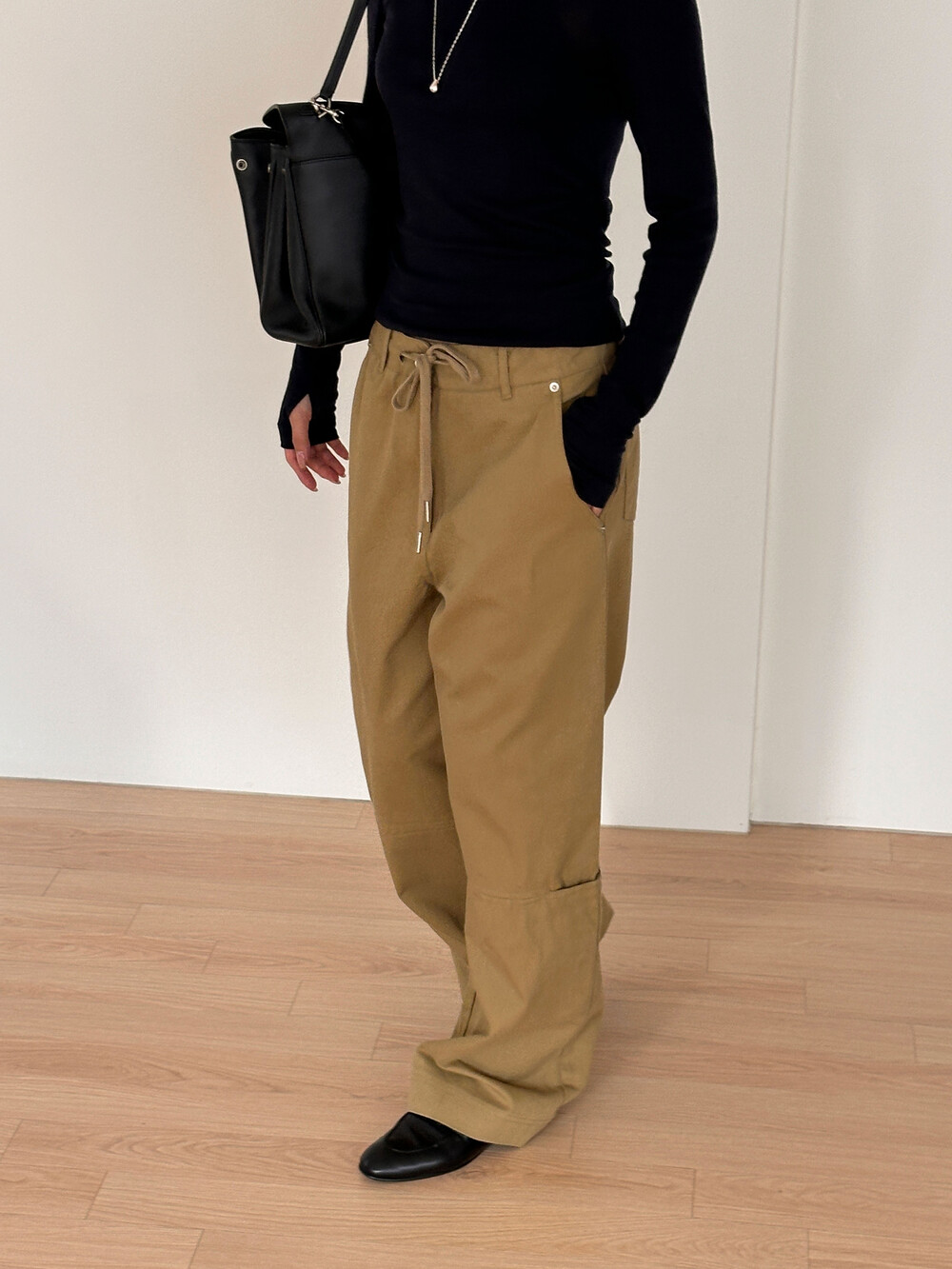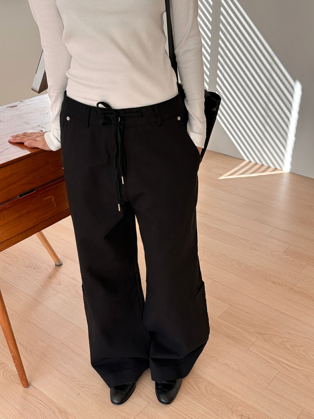 허리 스트링으로 조절이 가능해 착용자의 체형에 맞춰 자연스럽게 핏을 잡을 수 있습니다.