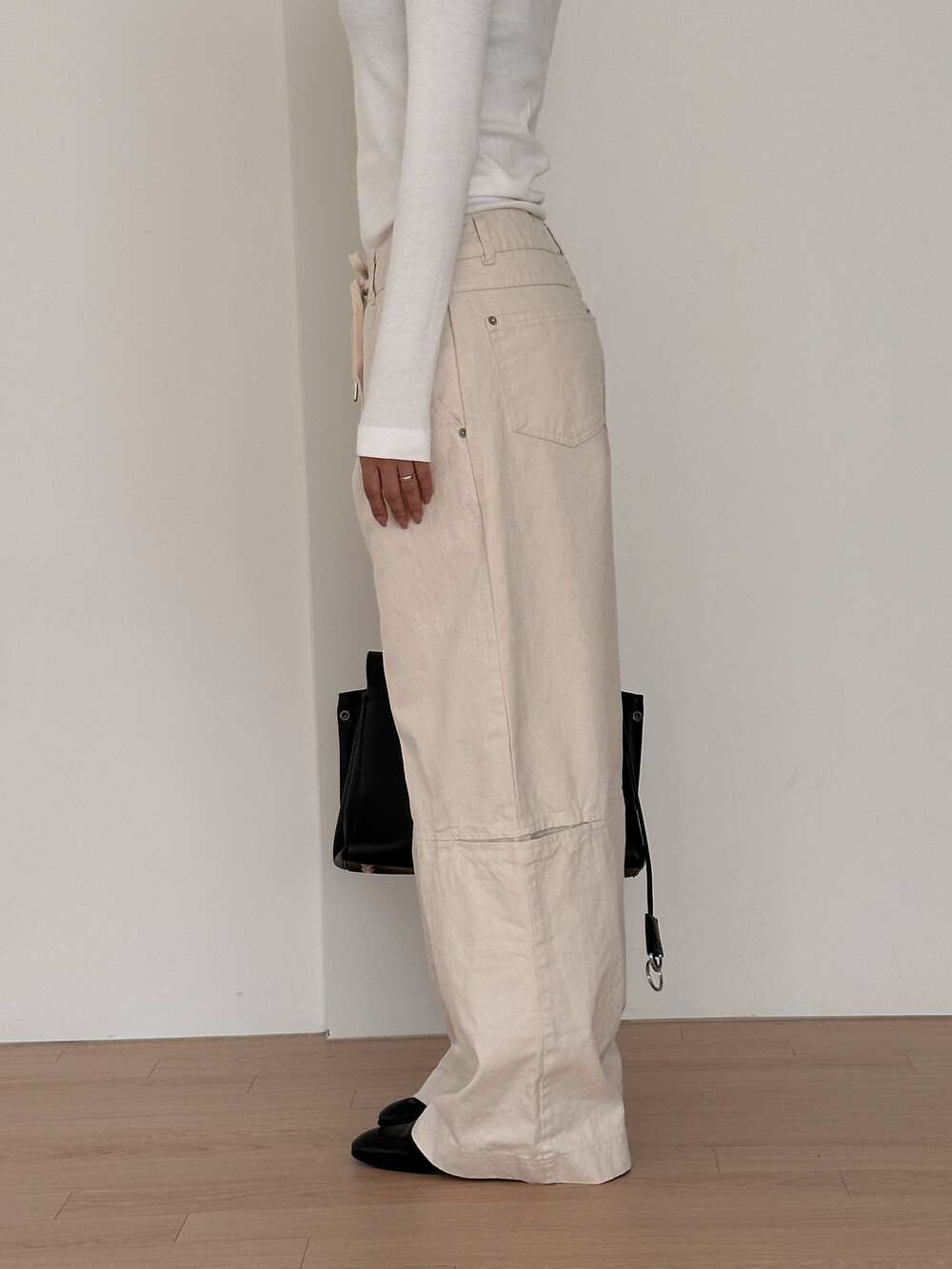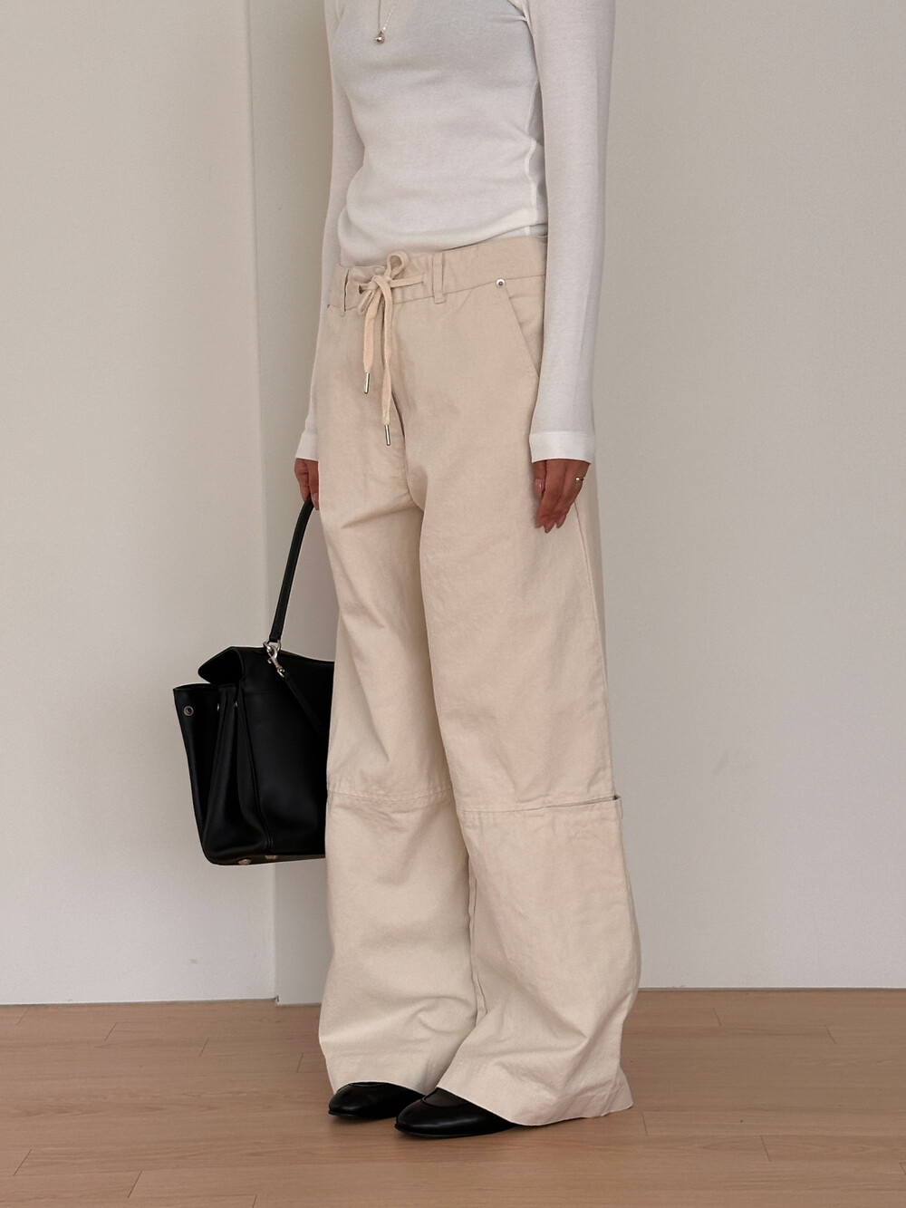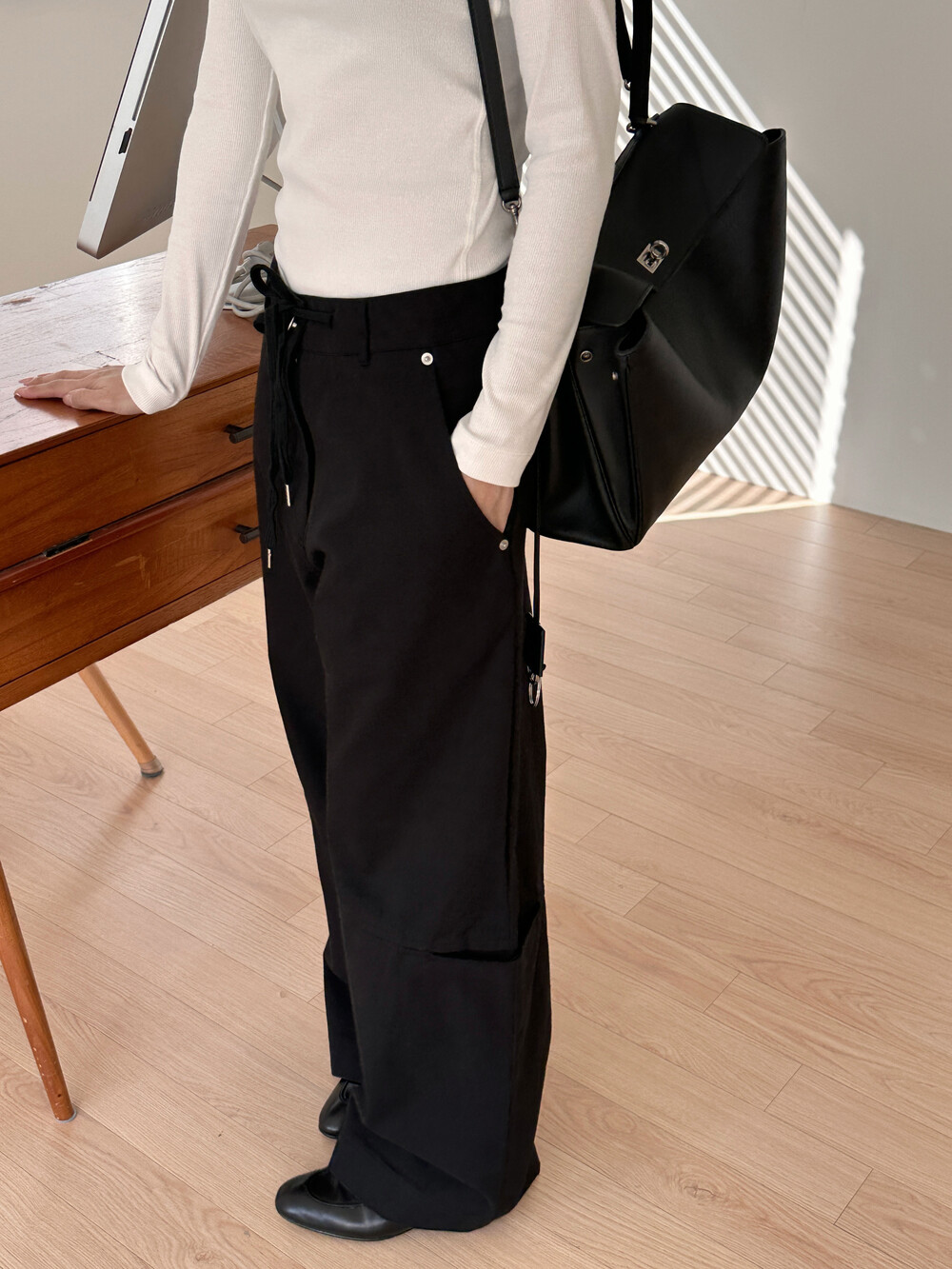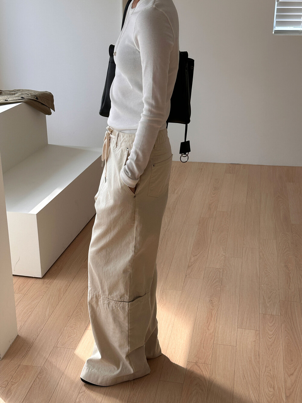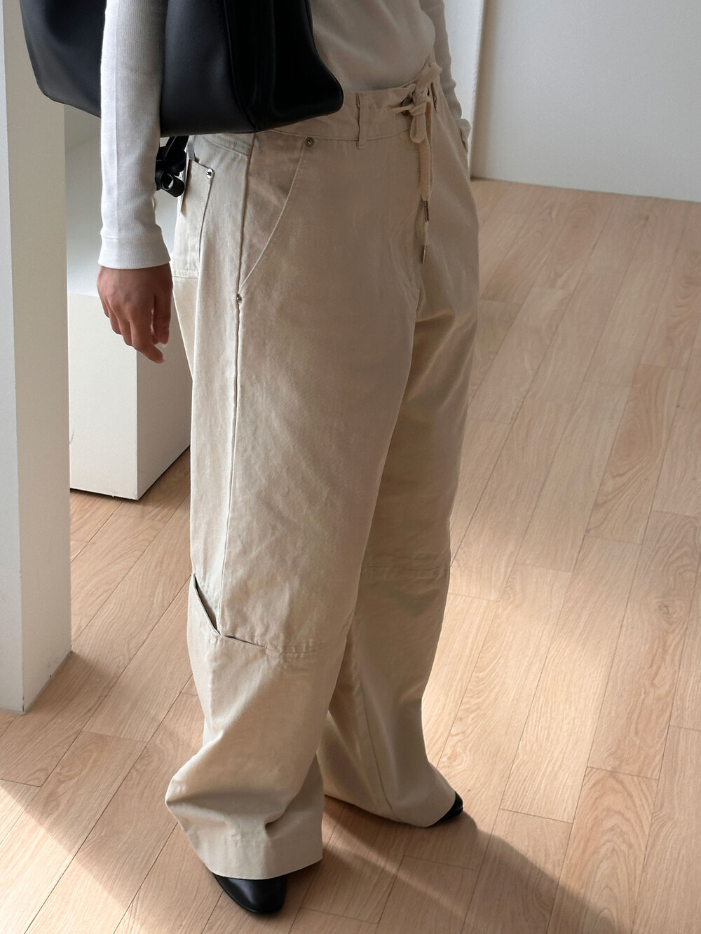 허리 스트링으로 조절이 가능해 착용자의 체형에 맞춰 자연스럽게 핏을 잡을 수 있습니다.