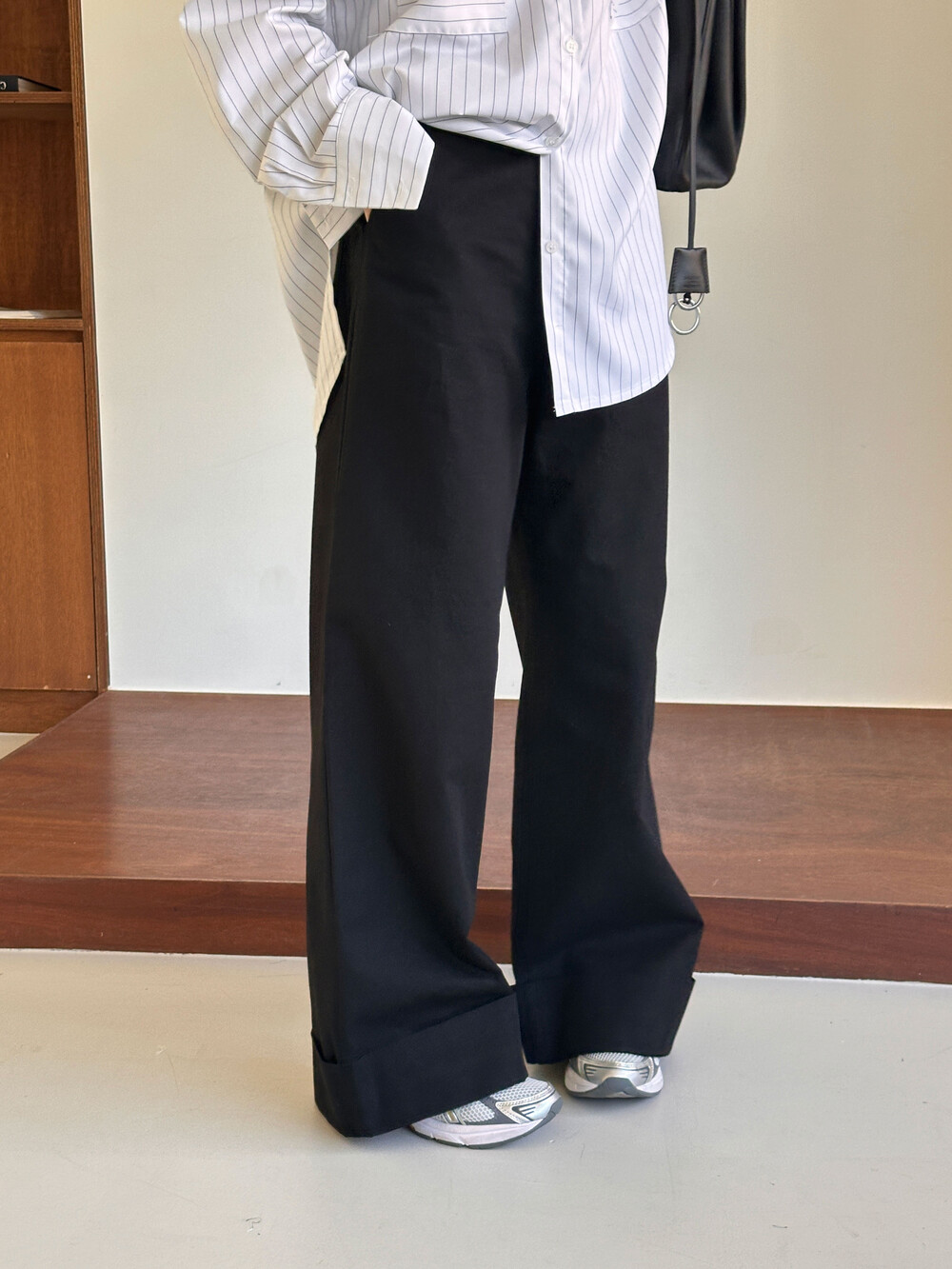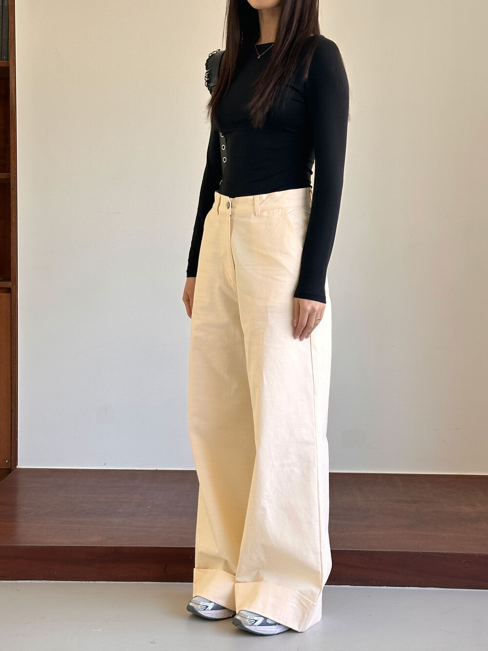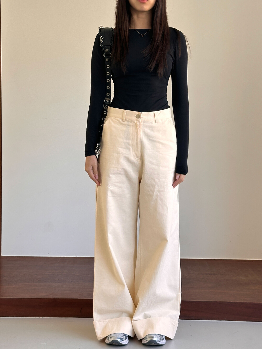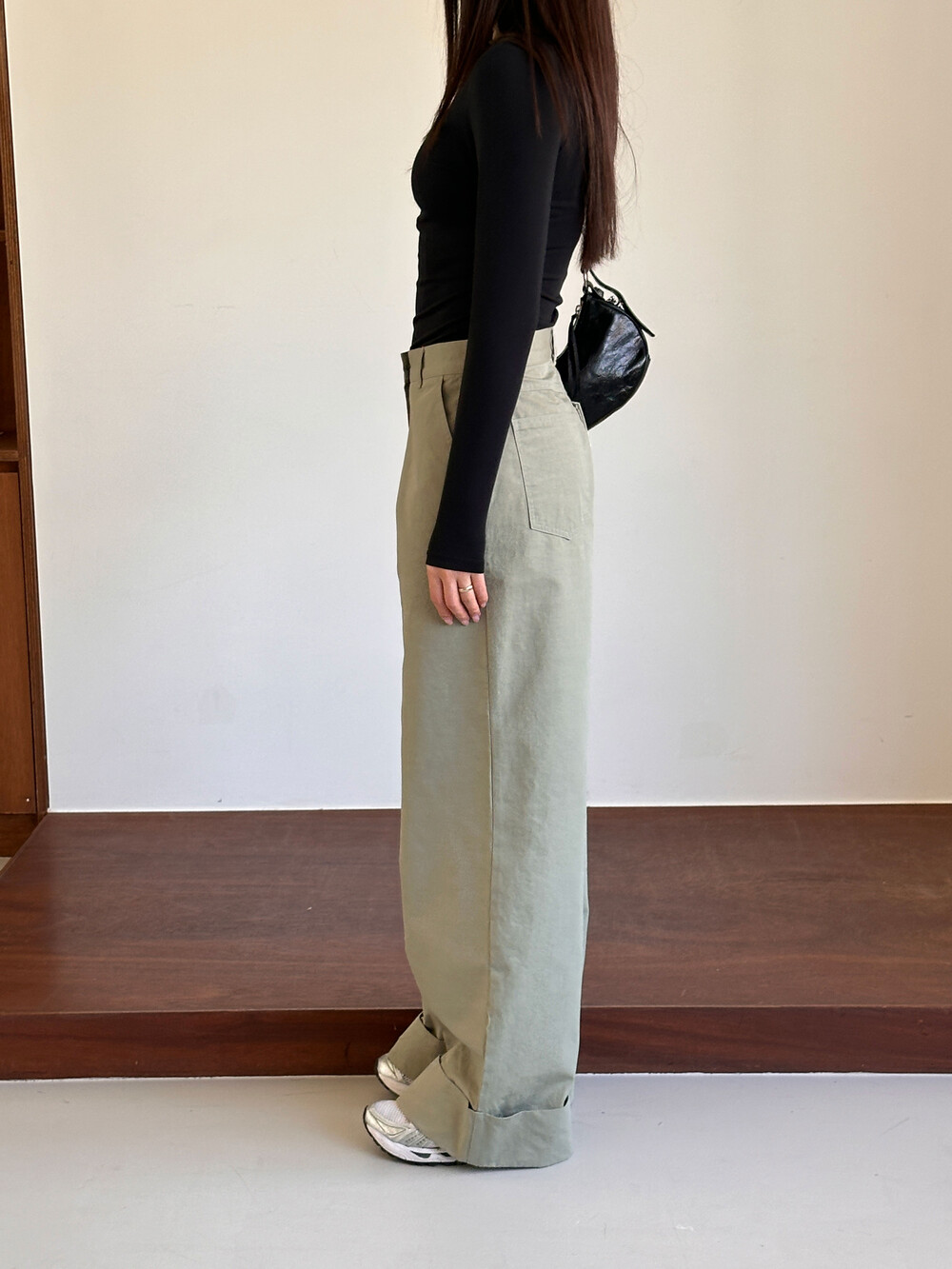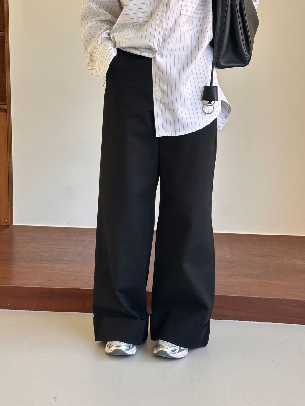 S 허리 34 힙 48 밑위 39 허벅31.5 총기장 105 밑단 30.5