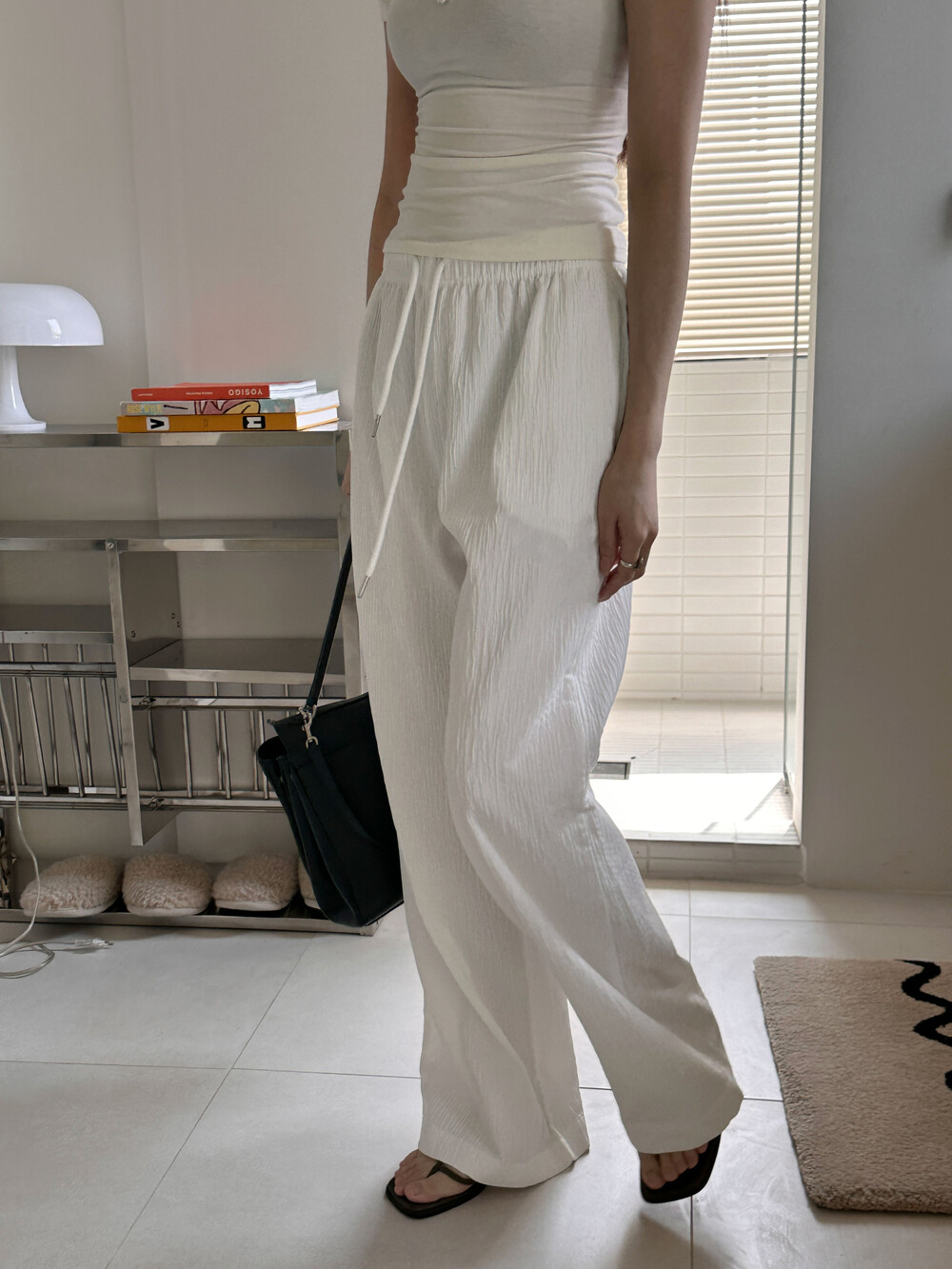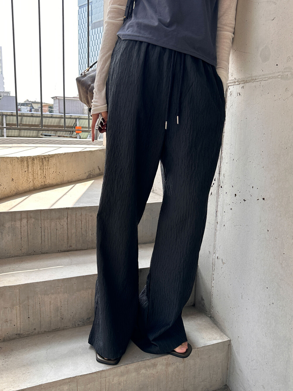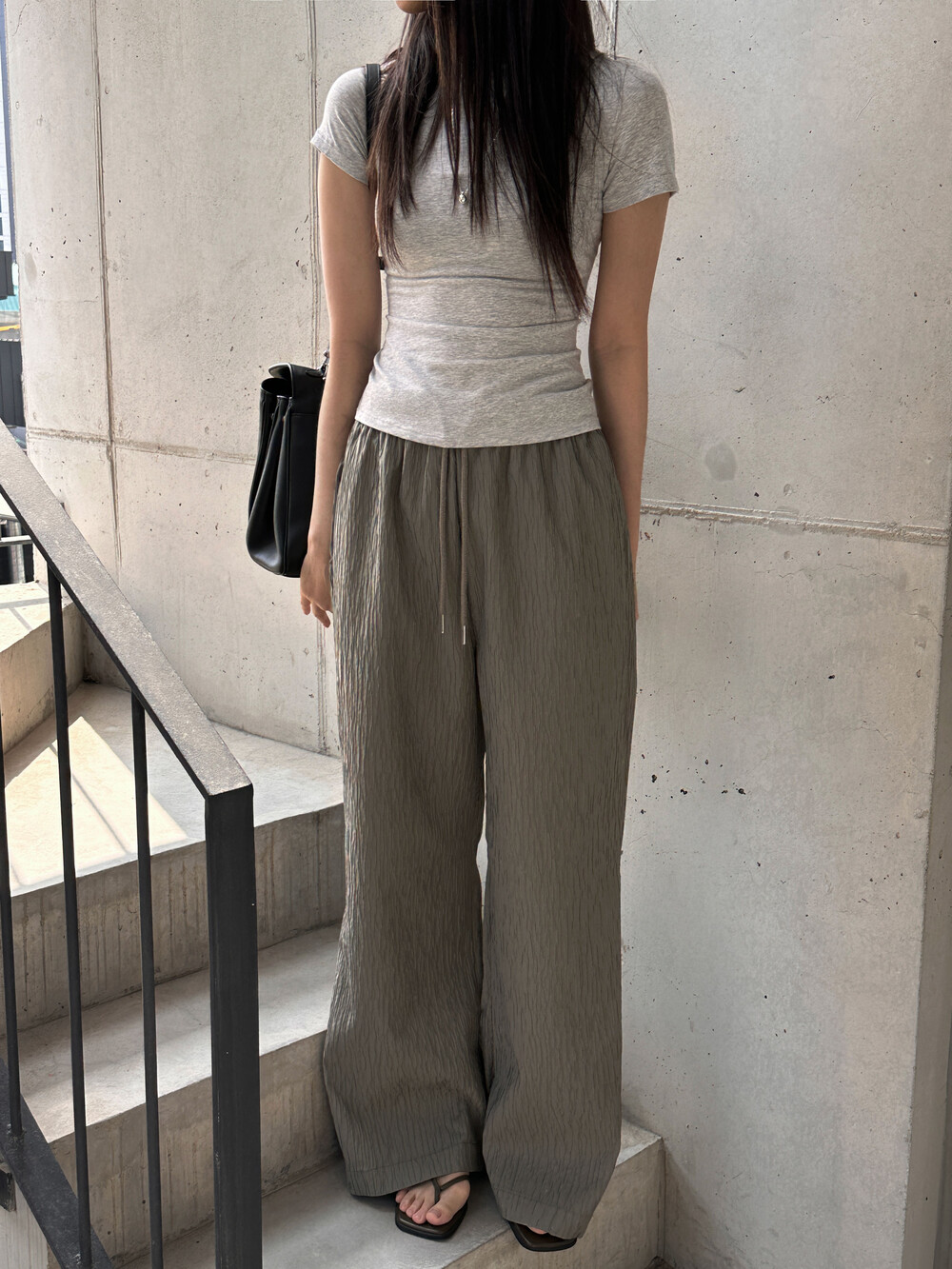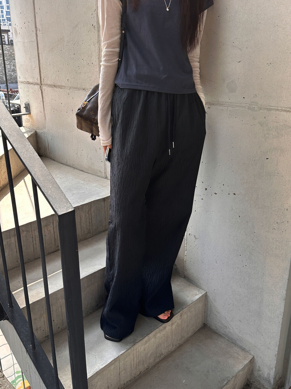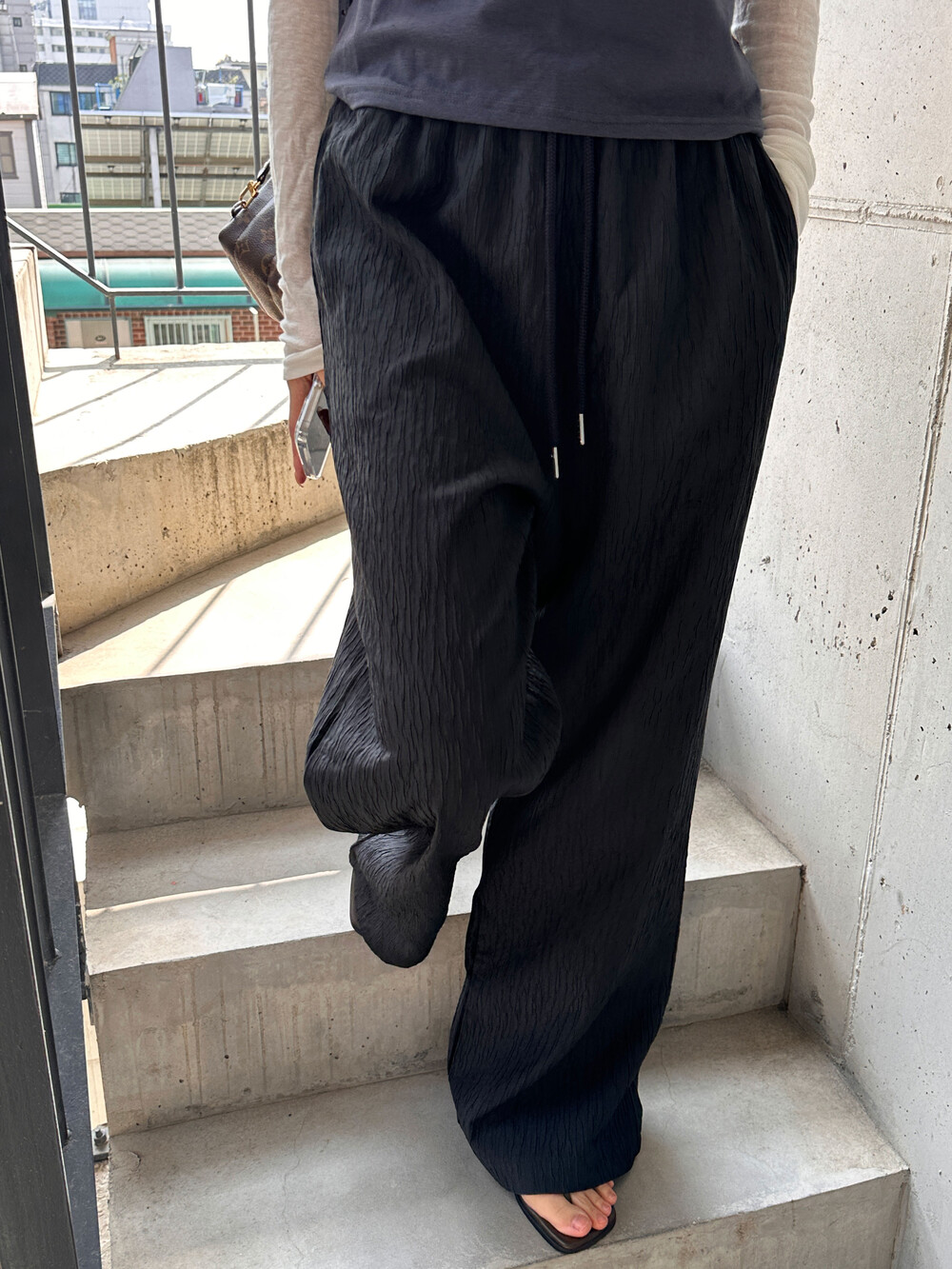 3180 와샤 물결 플리츠 스트링 밴딩 팬츠