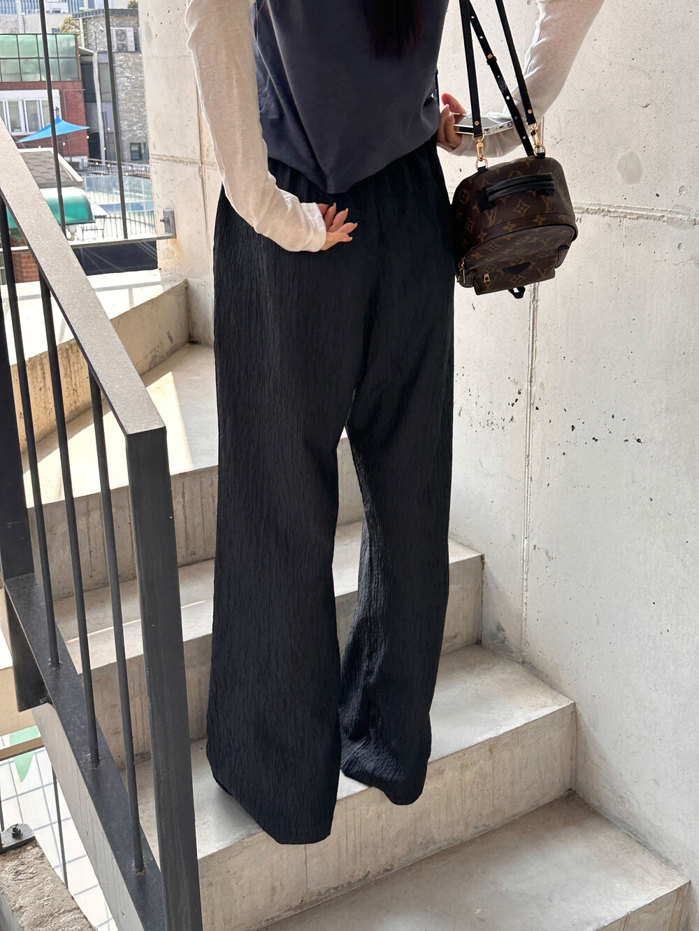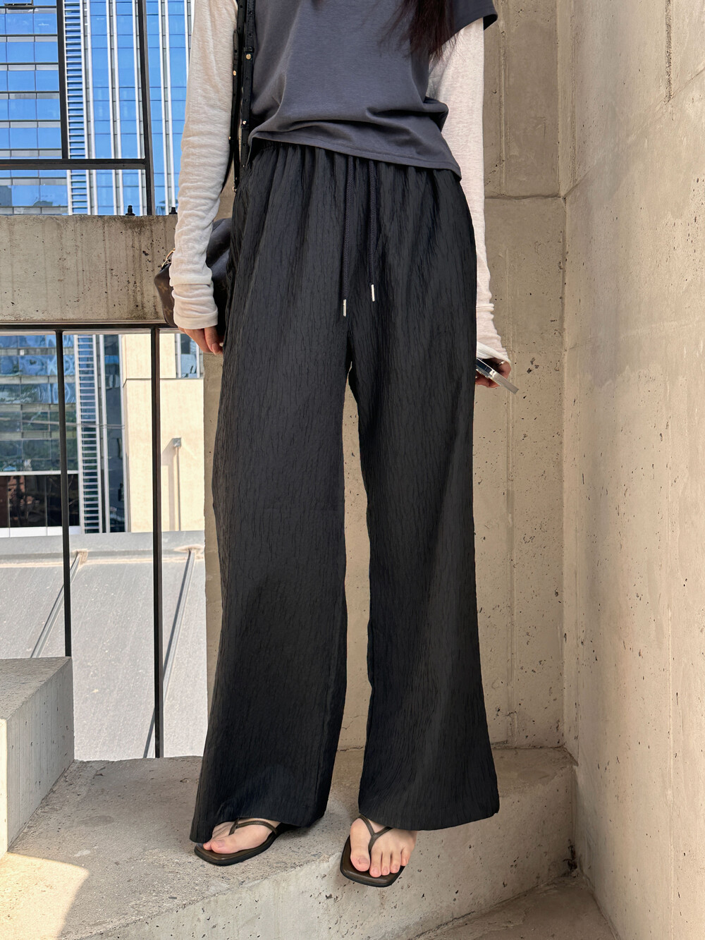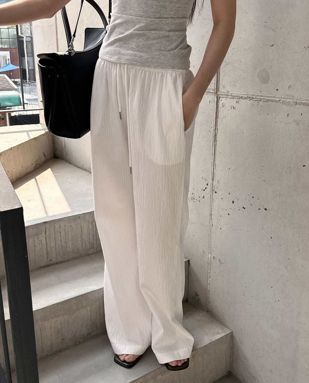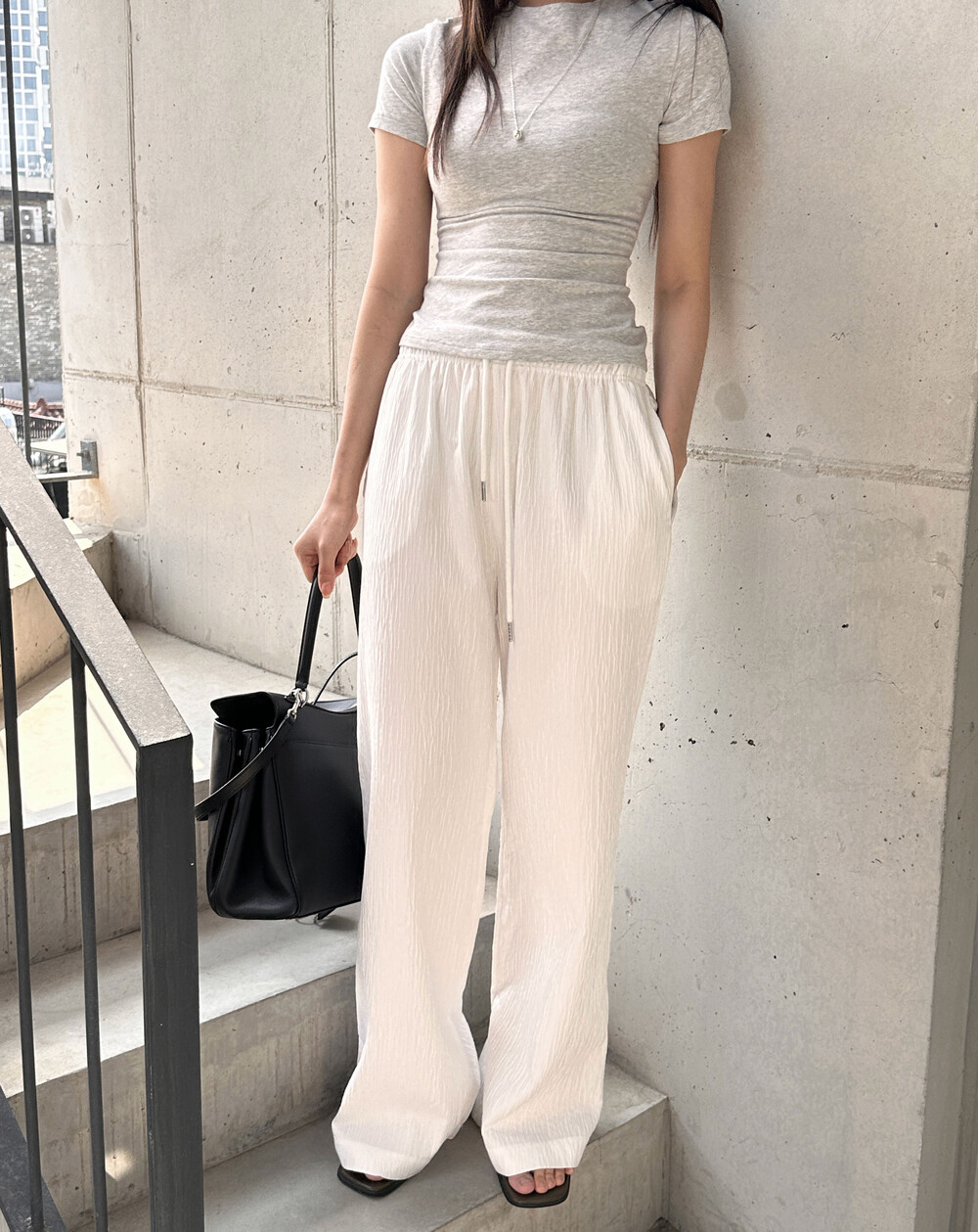 3180 와샤 물결 플리츠 스트링 밴딩 팬츠