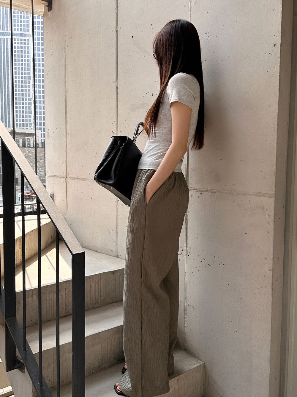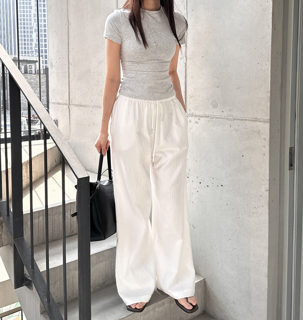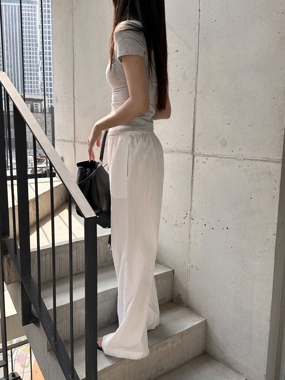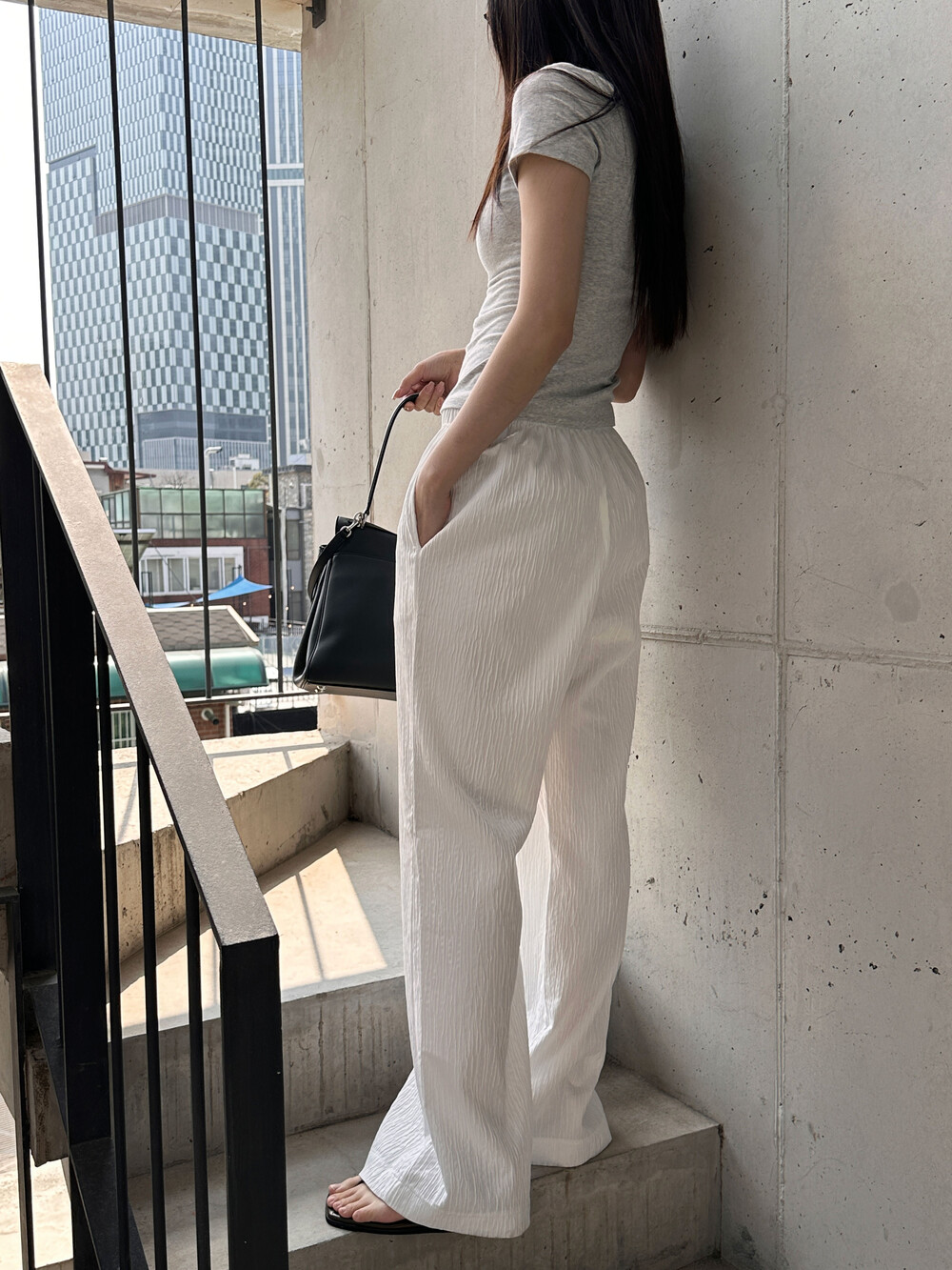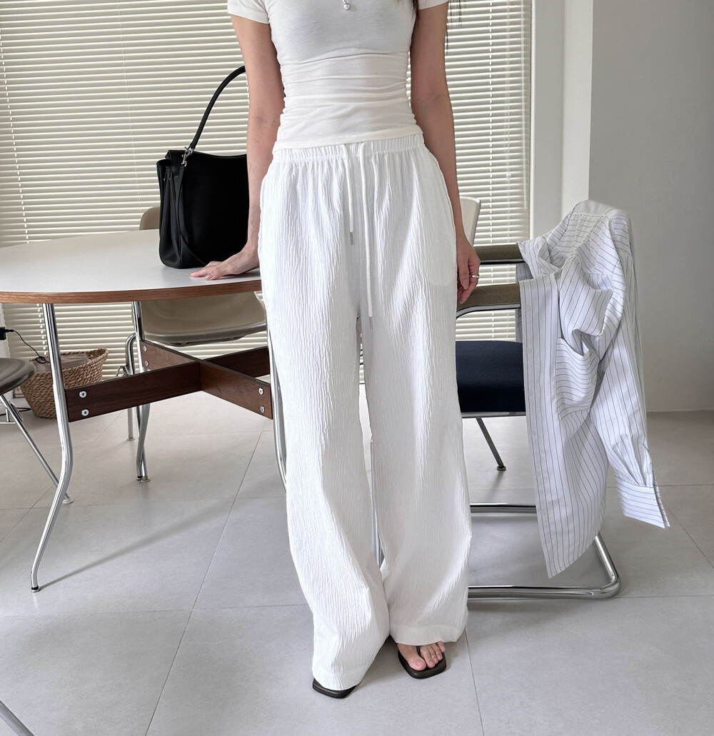 3180 와샤 물결 플리츠 스트링 밴딩 팬츠
